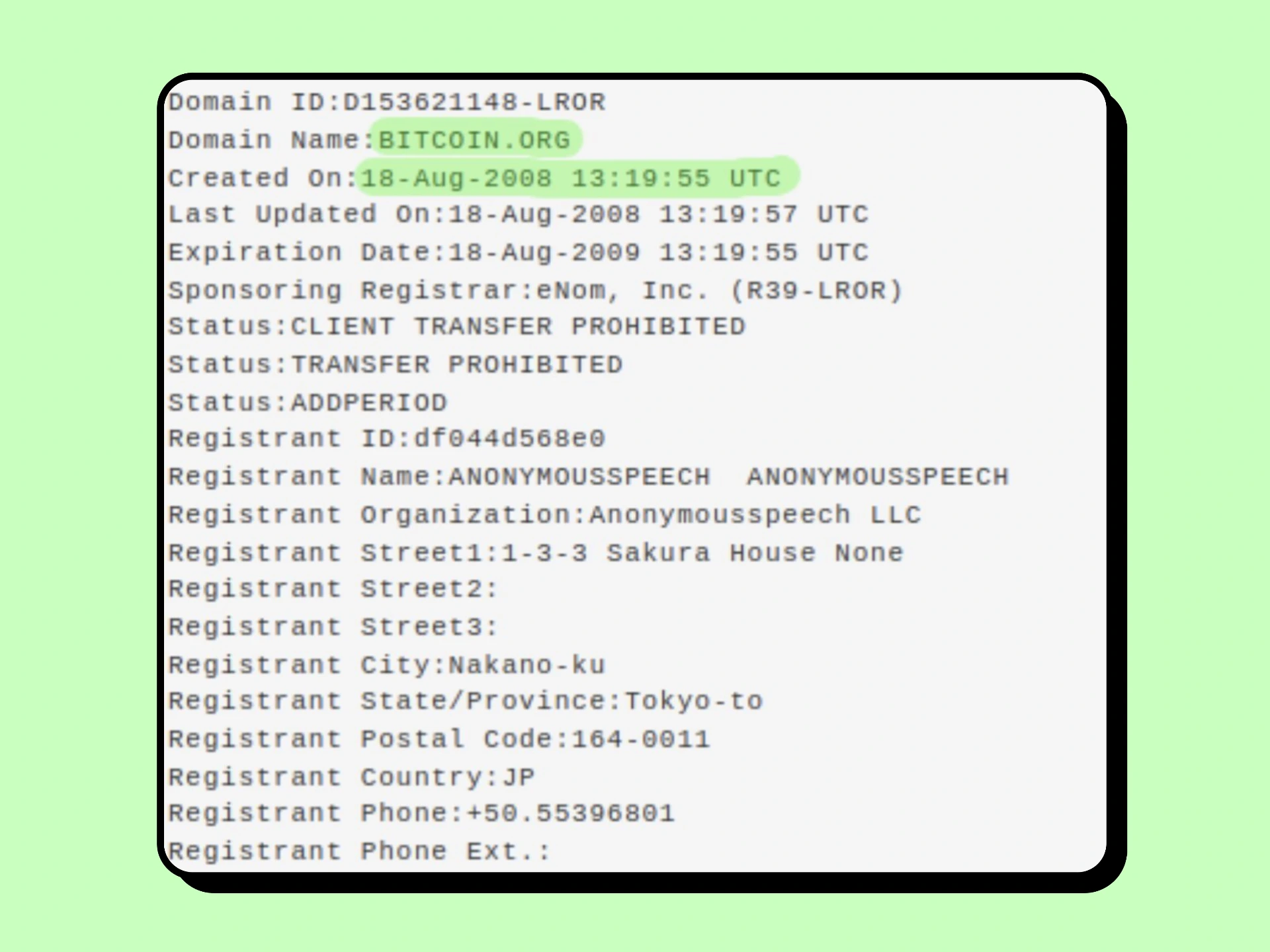 On August 18, 2008, the domain name bitcoin.org was registered.