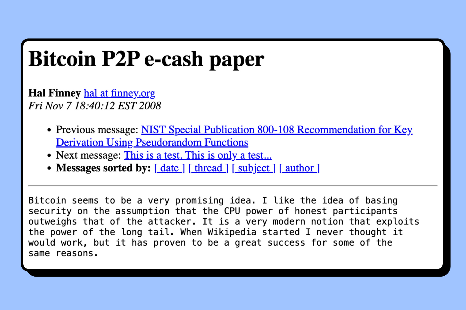 💬 Hal Finney's Response to the Bitcoin Launch Announcement