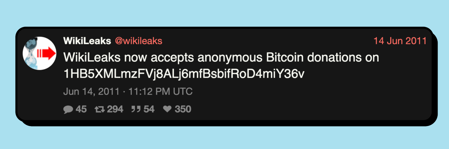 On June 14, 2011, Wikileaks began accepting bitcoin as a measure to combat the politically motivated banking blockade by leading banks and payment service providers under US influence.