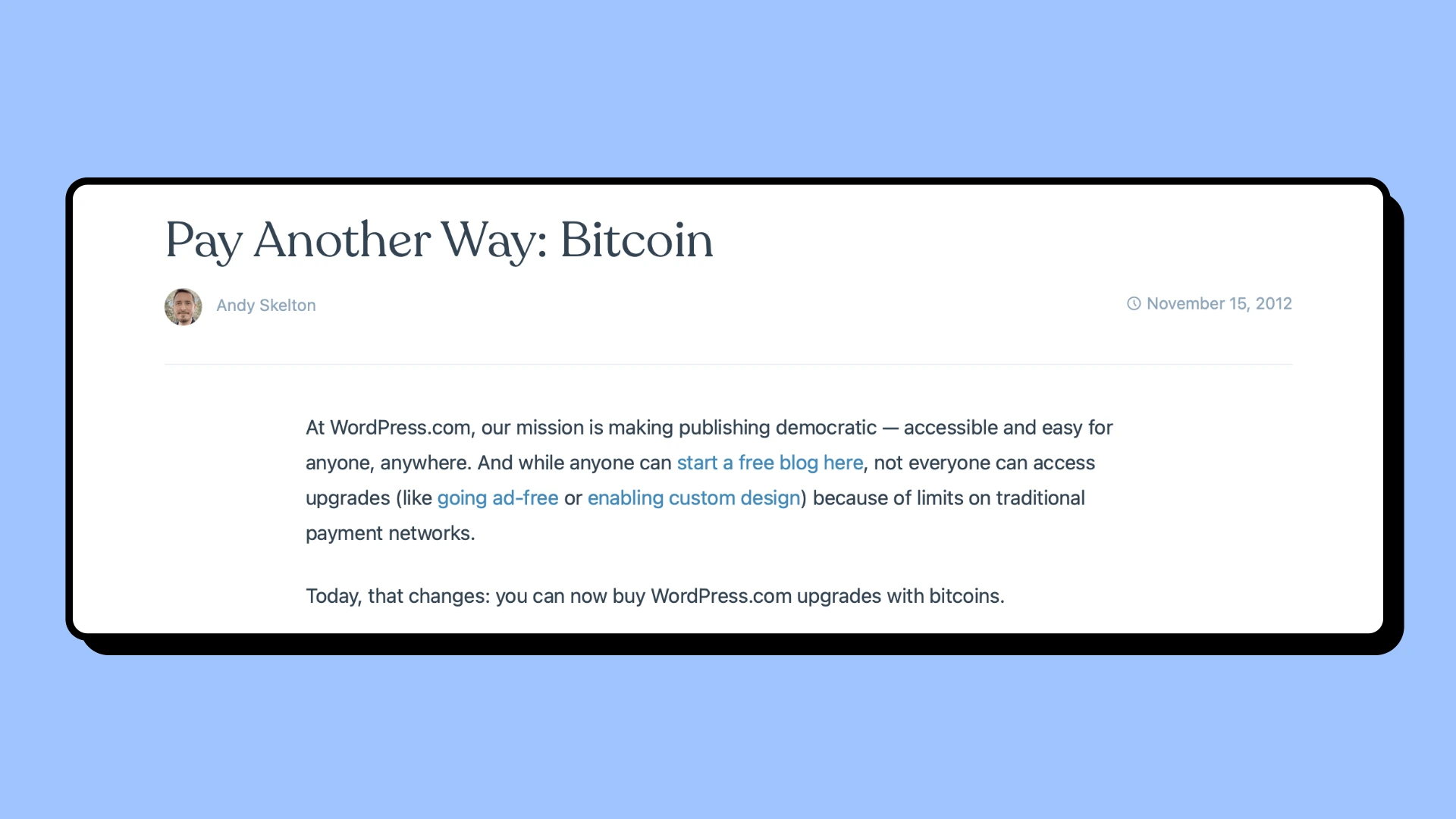 https://web.archive.org/web/20240630014635/https://wordpress.com/blog/2012/11/15/pay-another-way-bitcoin/