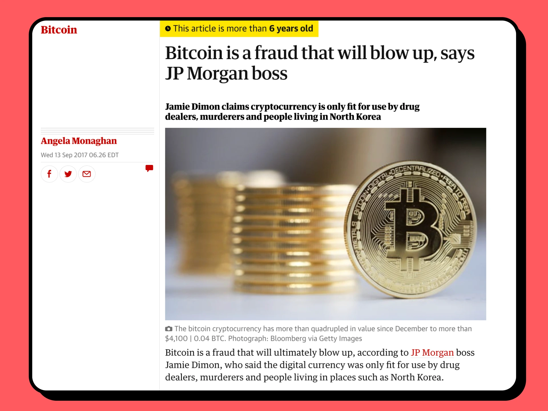 On September 12, 2017, JP Morgan CEO Jamie Dimon stated that only drug dealers and murderers use Bitcoin. Just six months later, he changed his tune due to plans to release JPMorgan Coin 🤡
