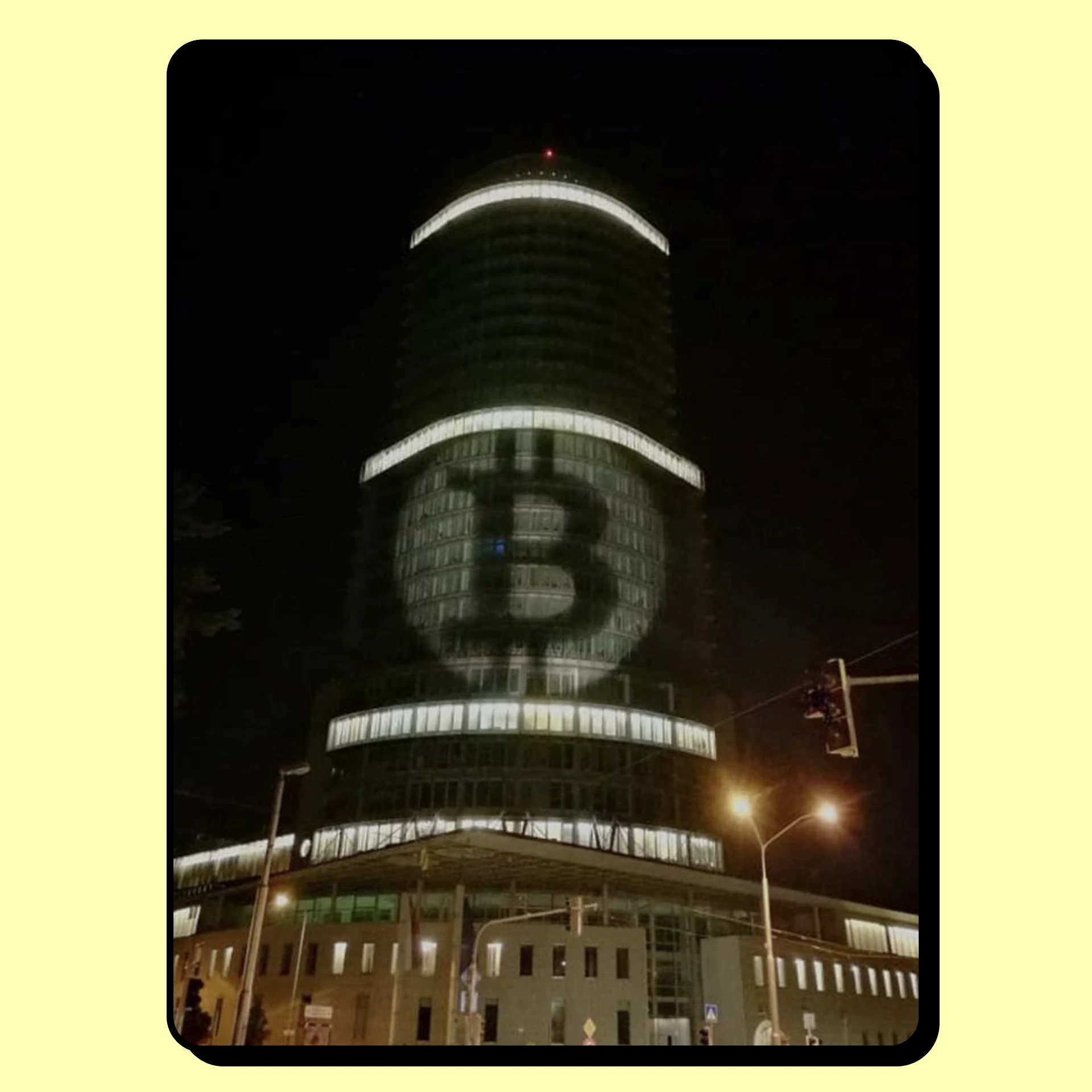On July 13, 2018, enthusiasts beamed a Bitcoin beacon onto the building of the Slovak Central Bank. 1 BTC = $6,000